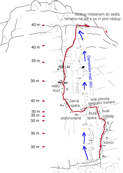 Lepší schéma a také popis a schéma Damoklova meče (6c) na www.planetmountain.com