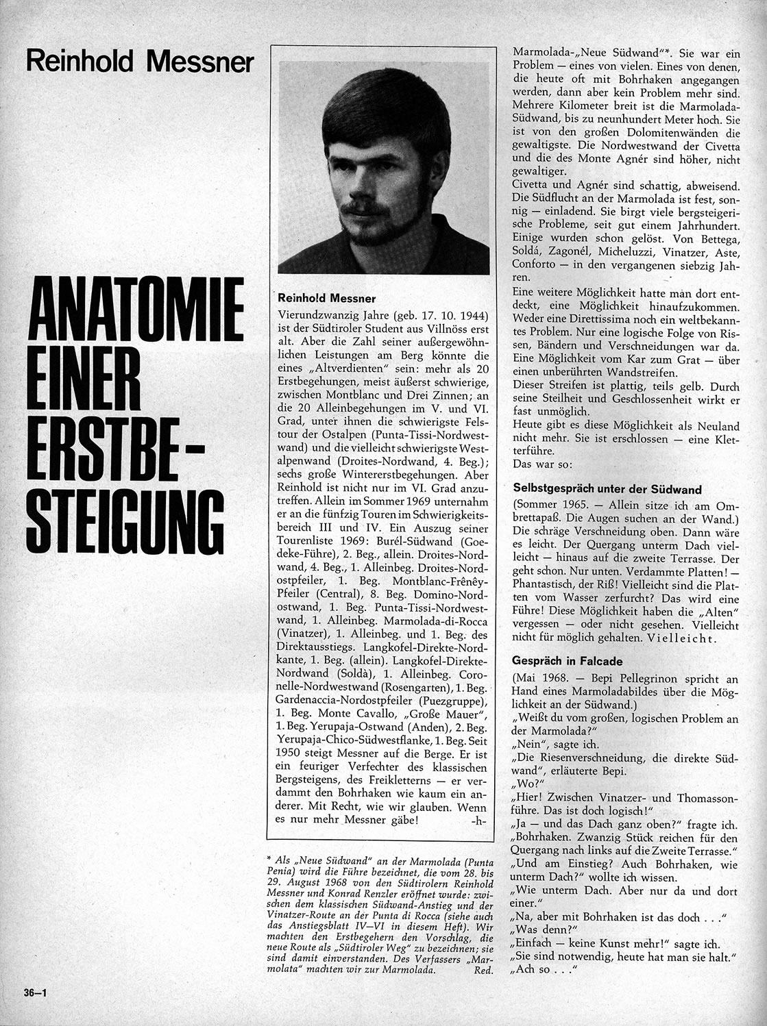 La première version de ce texte a été publiée par Alpinismus (janvier 1969) puis par « Le Alpi Venete » (C.A.I., 1er semestre 1969).