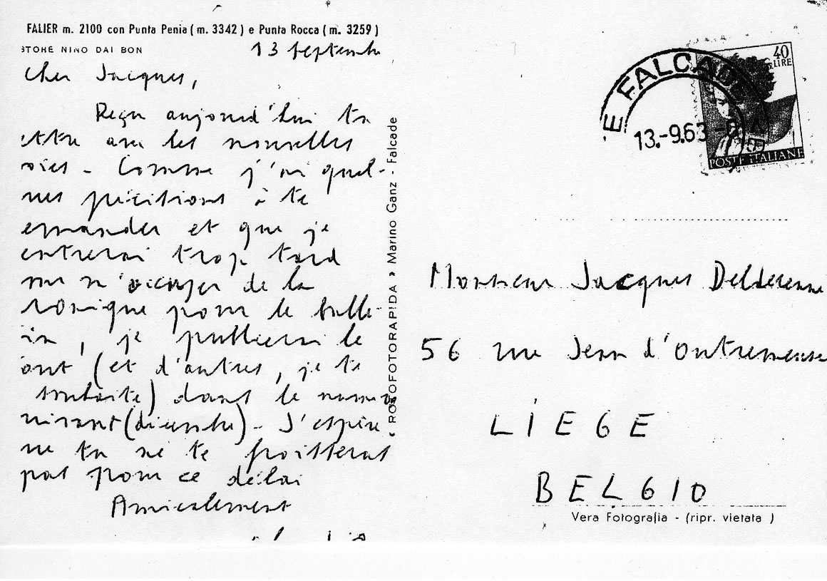 Reçu aujourd’hui ta lettre avec les nouvelles voies. Comme j’ai quelques précisions à te demander et que je rentrerai trop tard pour m’occuper de la chronique pour le bulletin, je publierai le tout (et d’autres, si tu le souhaites) dans le numéro suivant (décembre). J’espère que tu ne te froisseras pas pour ce délai.