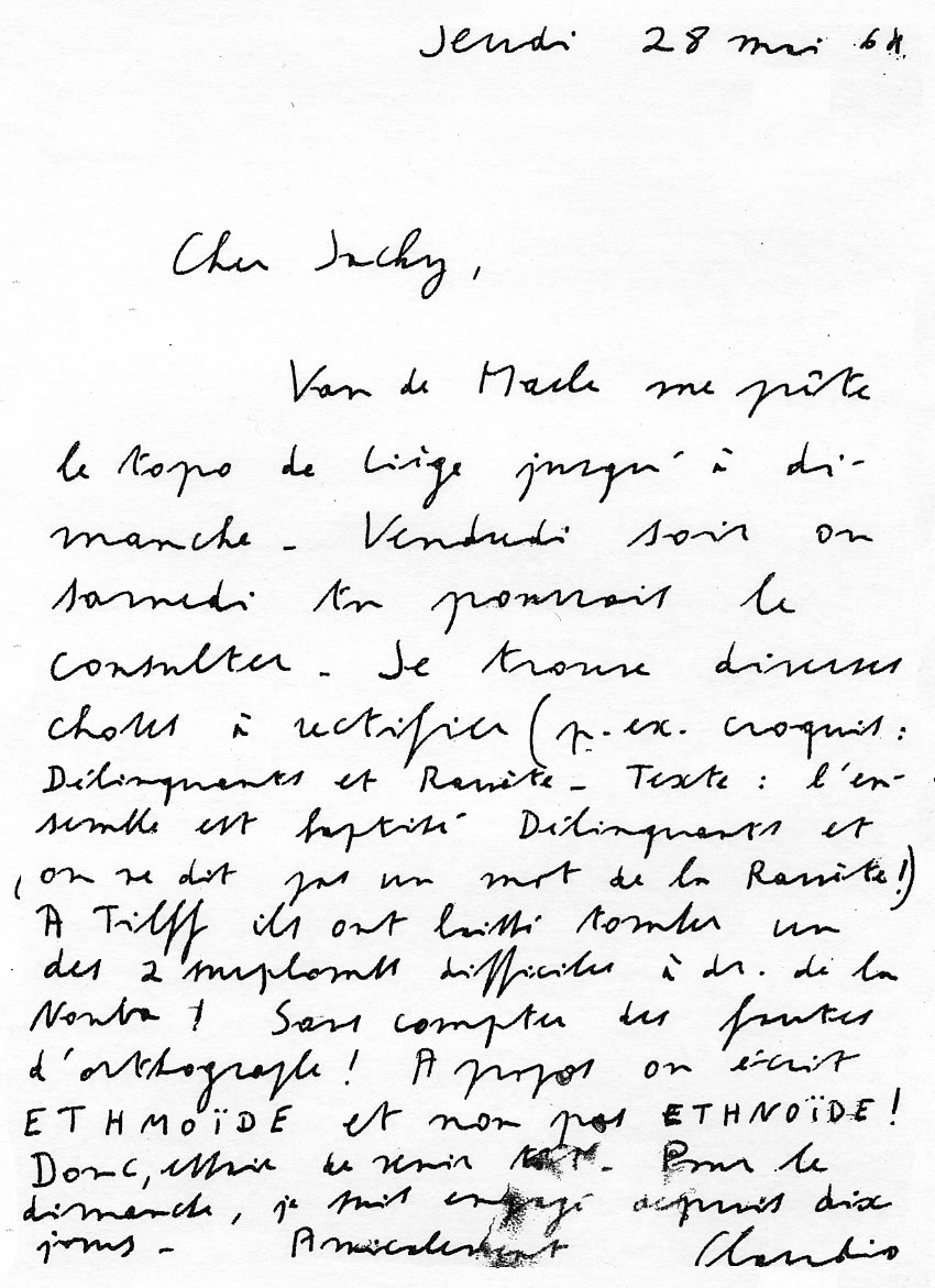 Carte à Jacques Delderenne (28 mai 1964)