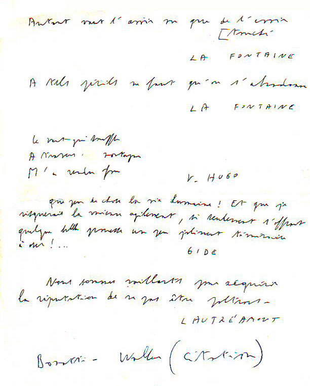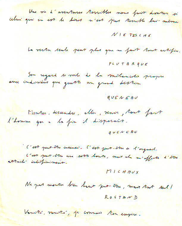 Trouvées dans les papiers de Claudio Barbier, ces citations notées sur des feuillets :