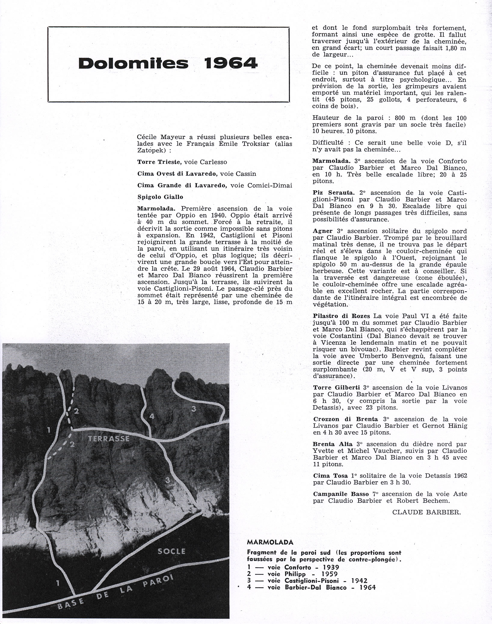 1964 – Dolomites 1964 (Bulletin du C.A.B., juillet 1965)