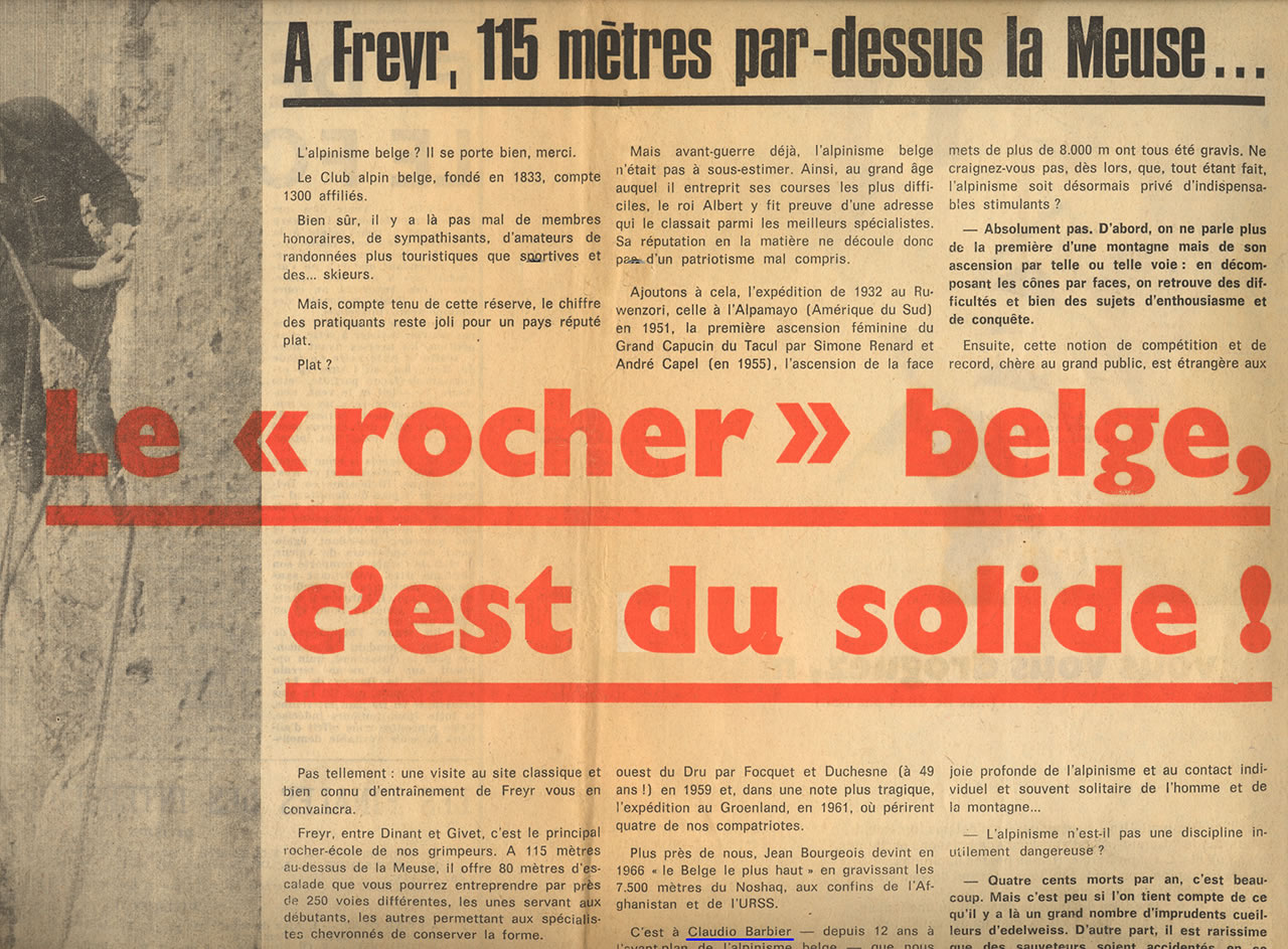 Tout en restant membres du Club alpin belge, les meilleurs d’entre eux ont fondé récemment le «Groupement belge d’Alpinistes» : un club très fermé, puisque l’admission est réservée à ceux que, par analogie avec le tennis, on pourrait appeler les «séries A» de nos alpinistes.