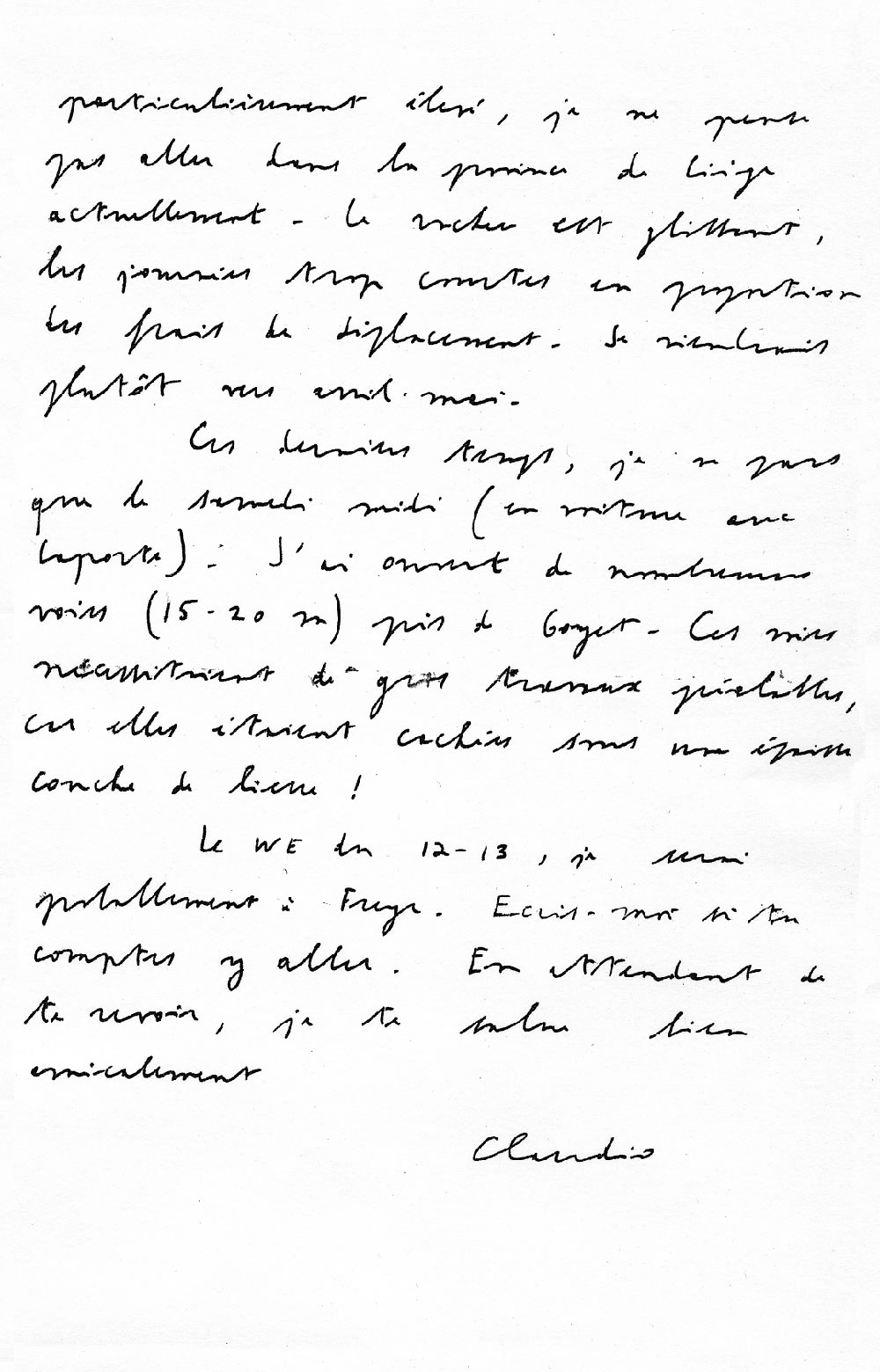 Le WE du 12-13, je serai probablement à Freyr. Ecris-moi si tu comptes y aller. En attendant de te revoir, je te salue bien amicalement
