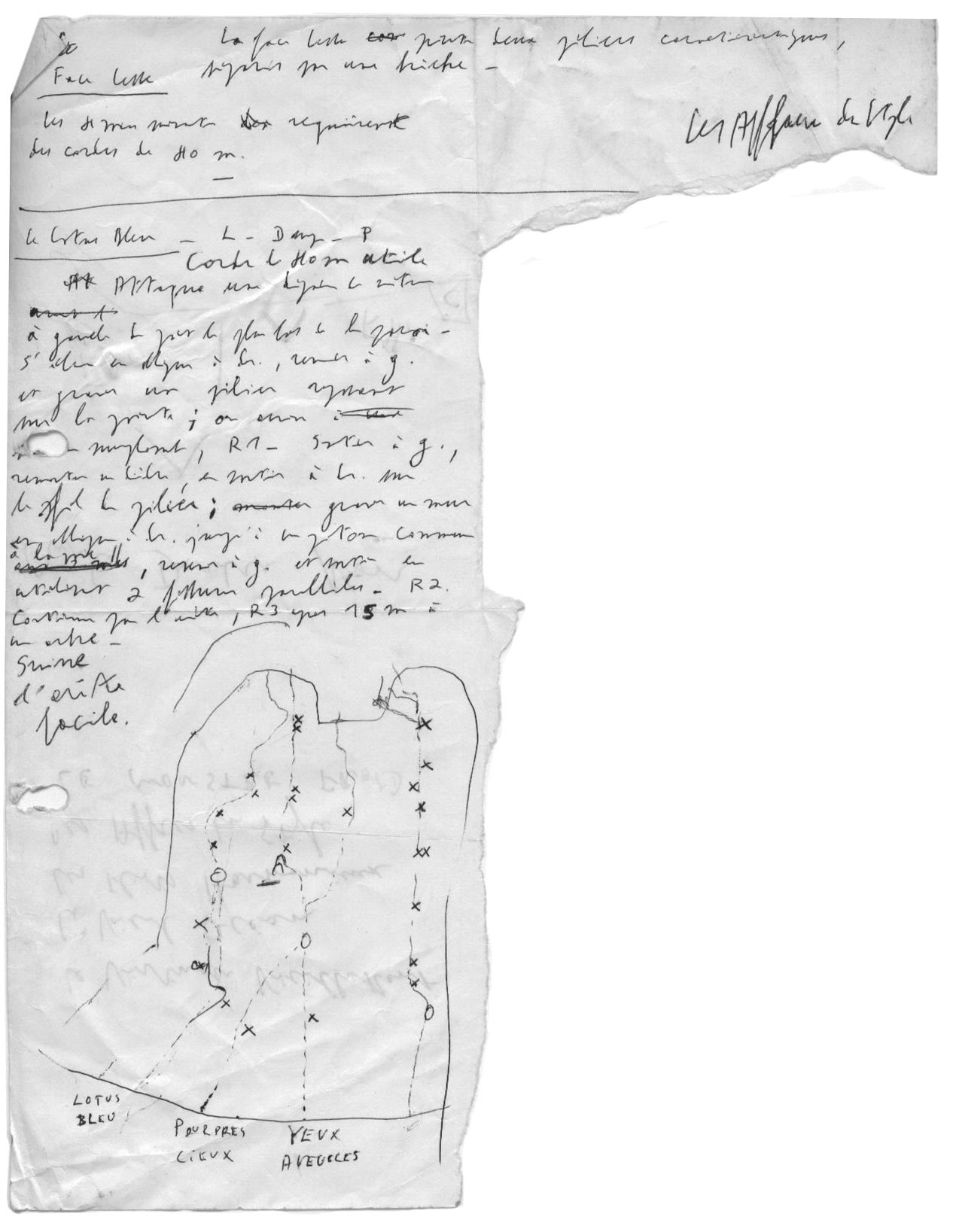 DiversNote de topo Brouillon de note après l’ouverture d’une voie (« Le lotus bleu ») au Rocher du Pendu (Anseremme). Voie ouverte en 1976 avec Guy Vankherkoven et Philippe Godard. Note après l’ouverture d’une voie (1976)