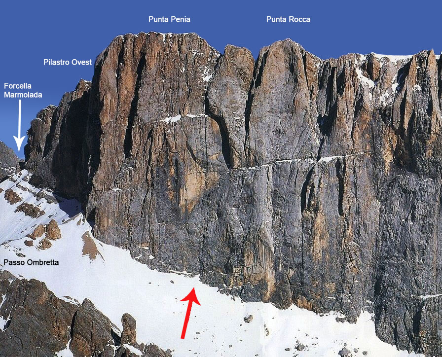 Marmolada, paroi sud, Punta Penia, voie Messner
