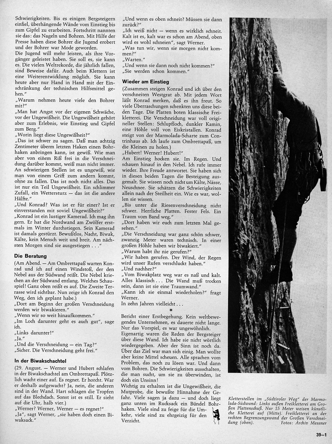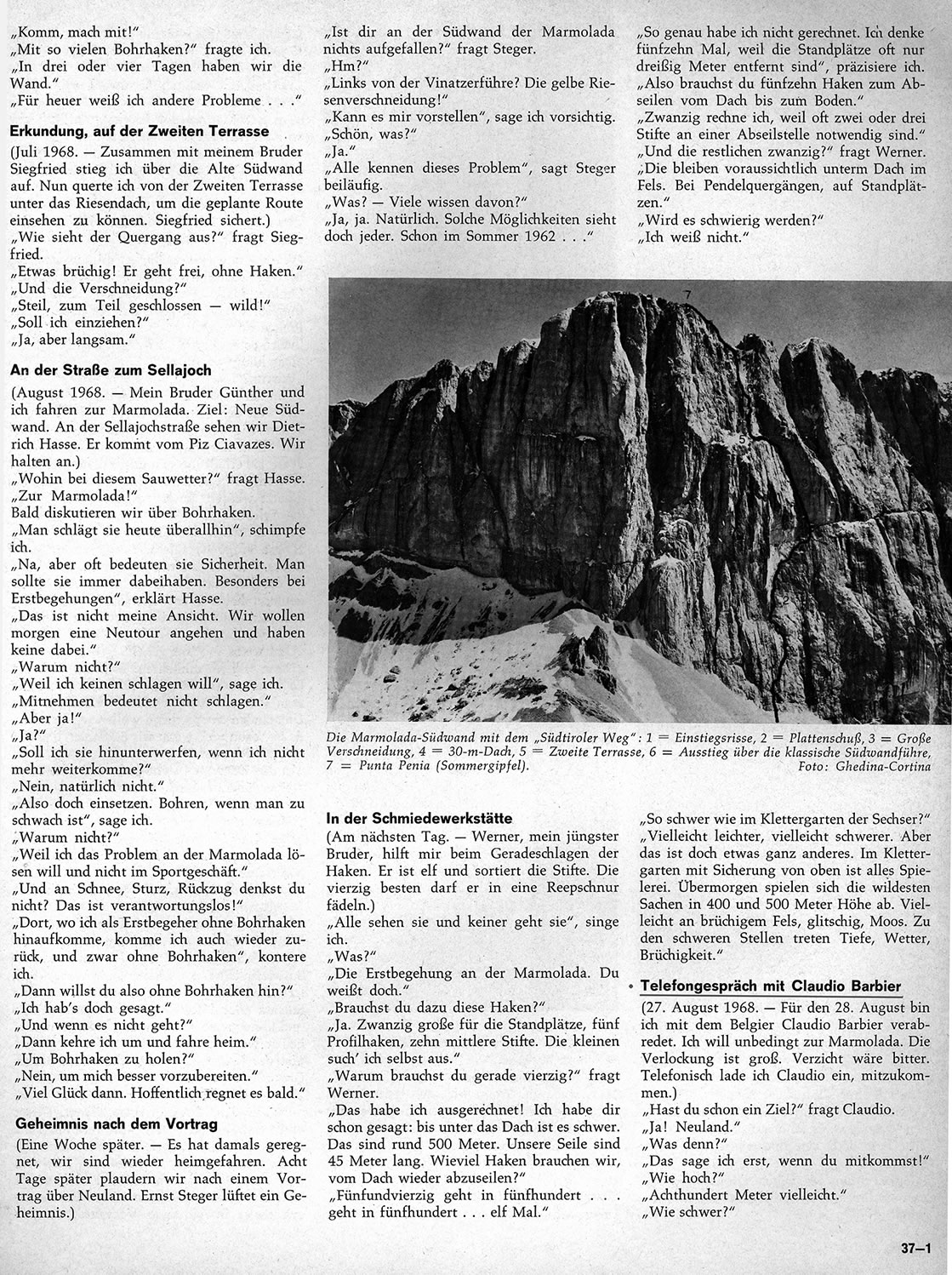 La première version de ce texte a été publiée par Alpinismus (janvier 1969) puis par « Le Alpi Venete » (C.A.I., 1er semestre 1969).