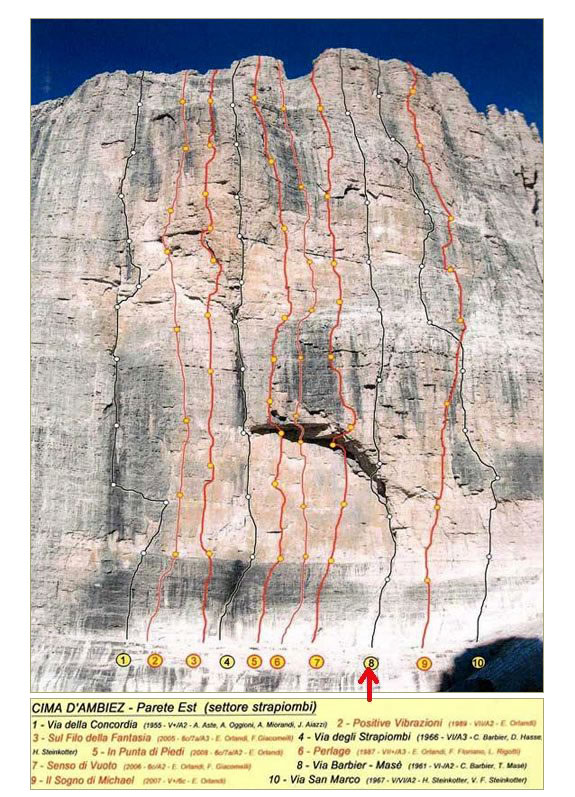 Cima d’Ambiez (Brenta), face est, direttissima, avec Toni Masè, Gianni Mazzenga et Lella Cesarin, dédiée à la mémoire d’Helmut Albrecht.