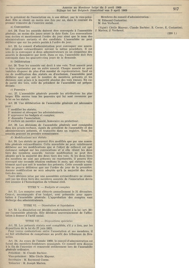 C’est dans cet esprit que nous avons défini les conditions d’admission au G.B.A., explicitées dans les statuts dont les articles principaux sont annexés. Les statuts complets de l’A.S.B.L. paraîtront prochainement aux annexes du Moniteur Belge.
