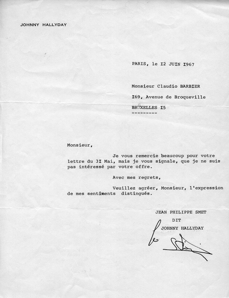 Réponse de Johnny Hallyday à la proposition de Claudio